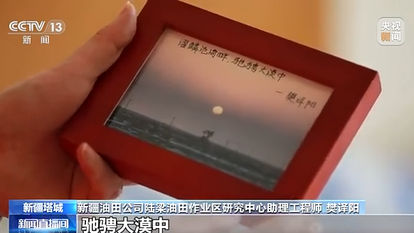 毕业刚两年,就担起了高产井的运维设计的担子,重任在肩,使命光荣。在这张照片上,樊译阳写上了一句诗——濯鳞沧海畔,驰骋大漠中,这是诗词《壮士篇》的片段,也是樊译阳的青春之歌。