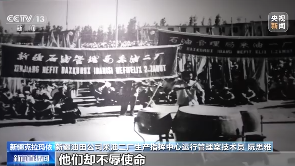 新疆油田公司采油二厂生产指挥中心运行管理室技术员阮思雅:当时看到一张那个年代来的年轻人的照片,他们平均年龄也就是20岁左右,他们却不辱使命,在这片戈壁荒滩上,成就了我们现在的基础。我们要接好他们的接力棒,我觉得我们现在吃的苦都不算苦。真的只有国家好了,我们才能好,而要国家好,只有我们一代一代年轻人不断去努力,不断去创造。