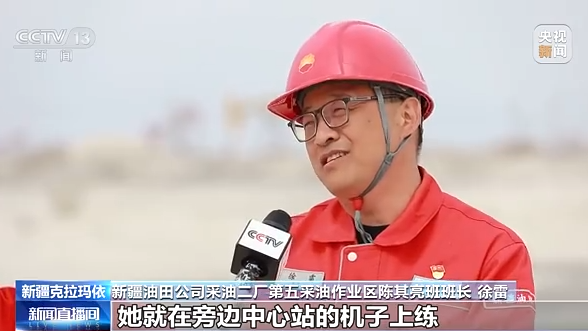 新疆油田公司采油二厂第五采油作业区陈其亮班班长徐雷:每个工作我们干完之后,我们回中心站该吃饭的时候我们要去吃饭,吃完饭找不到她了。然后一看,她就在旁边中心站的机子上练,能吃苦、能战斗,这个就非常钦佩。