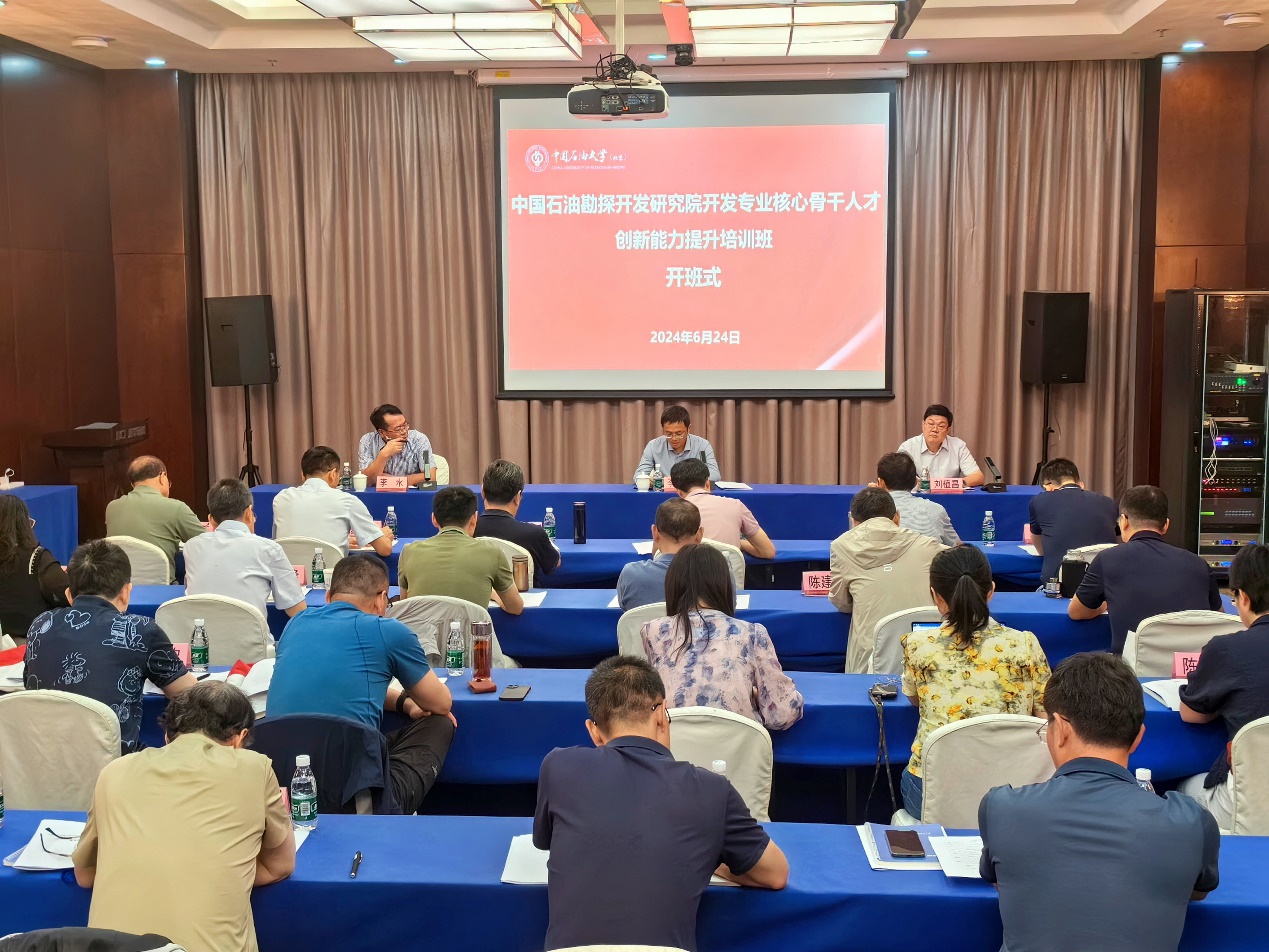 6月24日,由中国石油大学(北京)网络与继续教育学院承办的中国石油勘探开发研究院开发专业核心骨干人才创新能力提升培训班(第一期)正式开班。中国石油勘探开发研究院副院长李勇,中国石油大学(北京)副校长刘植昌出席会议,会议由网络与继续教育学院副院长李水主持,来自勘探院的31名学员参会。