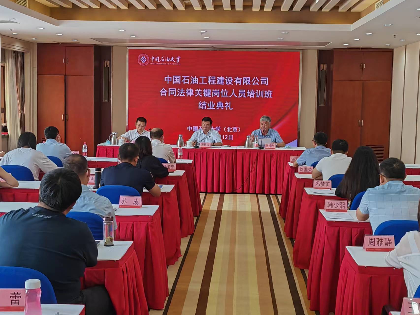 8月12日,由中国石油大学(北京)网络与继续教育学院承办的中国石油工程建设有限公司合同法律关键岗位人员培训班顺利结业。中国石油工程建设有限公司副总经理汪桃义、中国石油工程建设有限公司总法律顾问霍雷参加结业及开班式。中国石油工程建设有限公司总法律顾问霍雷主持结业典礼。