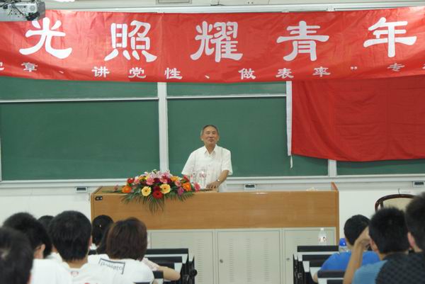 报告会上,李云鹏结合中国的近现代史,回顾了中国共产党建设所经历的曲折的发展历程,重点讲述了有中国特色社会主义理论的形成过程,赞成就,析得失,其间既有高屋建瓴的理论概括,又有细致入微的实践例证。他还简要地介绍了建党以来14次党章修改情况,并指出党章有着最高的权威性和约束力,是党员共同遵守的基本准则,修改党章,是党对自身使命、奋斗目标的认识不断清晰的过程,也是广大党员的共同意见和愿望。最后,年逾古稀的李云鹏结合自己的心路历程谈到了党员的人生观、价值观,并结合当代大学生的特点,表达了对朝气蓬勃的学生党员的赞赏和殷切希望。