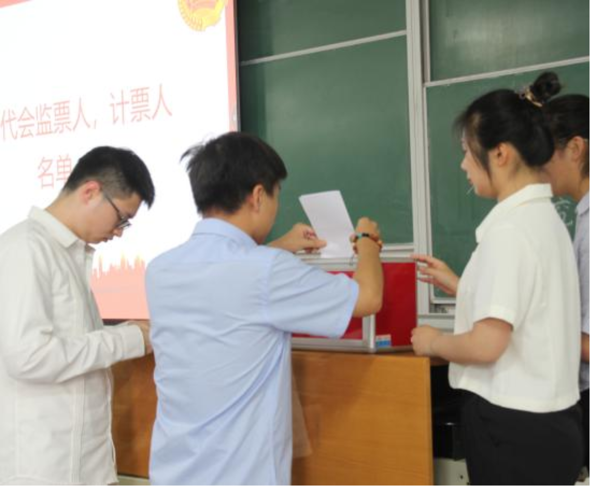 本次选举由学代会代表进行投票,计票人统计,监票人监票并宣读投票结果。