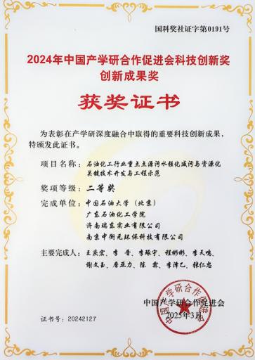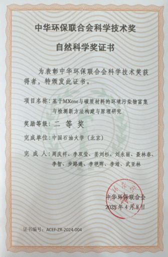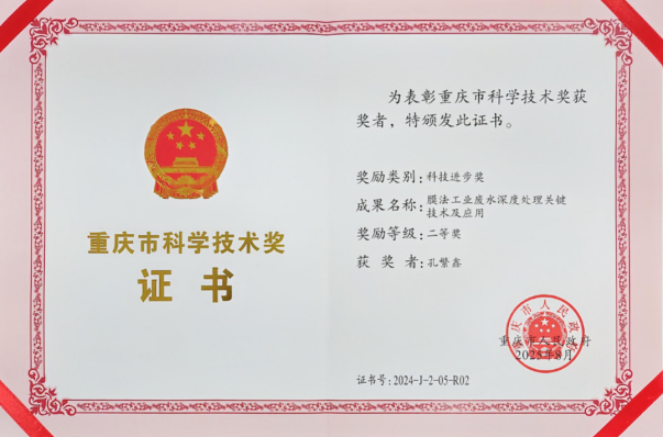荣获省部级及以上科技奖励5项,包括中国化工学会基础研究成果一等奖1项、重庆市科技进步二等奖1项、河北省科学技术进步奖三等奖1项、中华环保联合会科学技术二等奖1项、中国产学研合作创新与促进二等奖1项。
