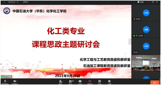 为深入落实立德树人根本任务,扎实推进化工类专业课程思政高质量建设,9月29日下午,化学工程与工艺专业虚拟教研室和石油加工课程虚拟教研室联合召开化工类专业课程思政主题研讨会(钉钉会议号432 164 92461)。来自两个虚拟教研室18个成员高校的270余名教师代表参加此次会议。