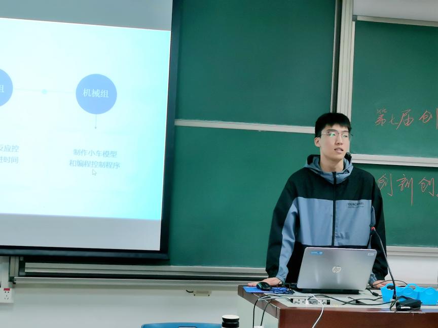 彭云飞同学作为创新先进代表,分享了他参加中国大学生Chem-E-Car竞赛,并带领团队荣获“性能竞赛特等奖”的精彩瞬间。他讲到本次取得的成绩与团队多年的坚持和不懈的密切相关,更离不开优秀指导教师的支持、历经七届的迭代传承和独立的实验场地支持。他鼓励大家在创新争先的过程中困难和挑战在所难免,坚定地迈步向前,一定会有收获。