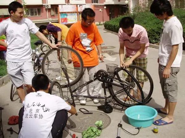 2009年5月9日,流云车协社团的同学们在润杰公寓开展义务修车活动。