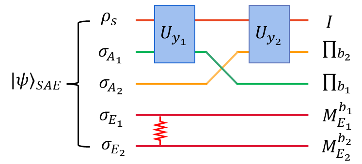 结合以上推导,考虑最一般的场景即量子态和测量都不可信