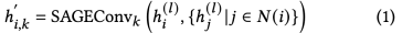 表示标准 GraphSAGE 聚合操作。自适应消息过滤通过门控机制对每个头的输出进行筛选,动态保留必要信息,优化信息传播。