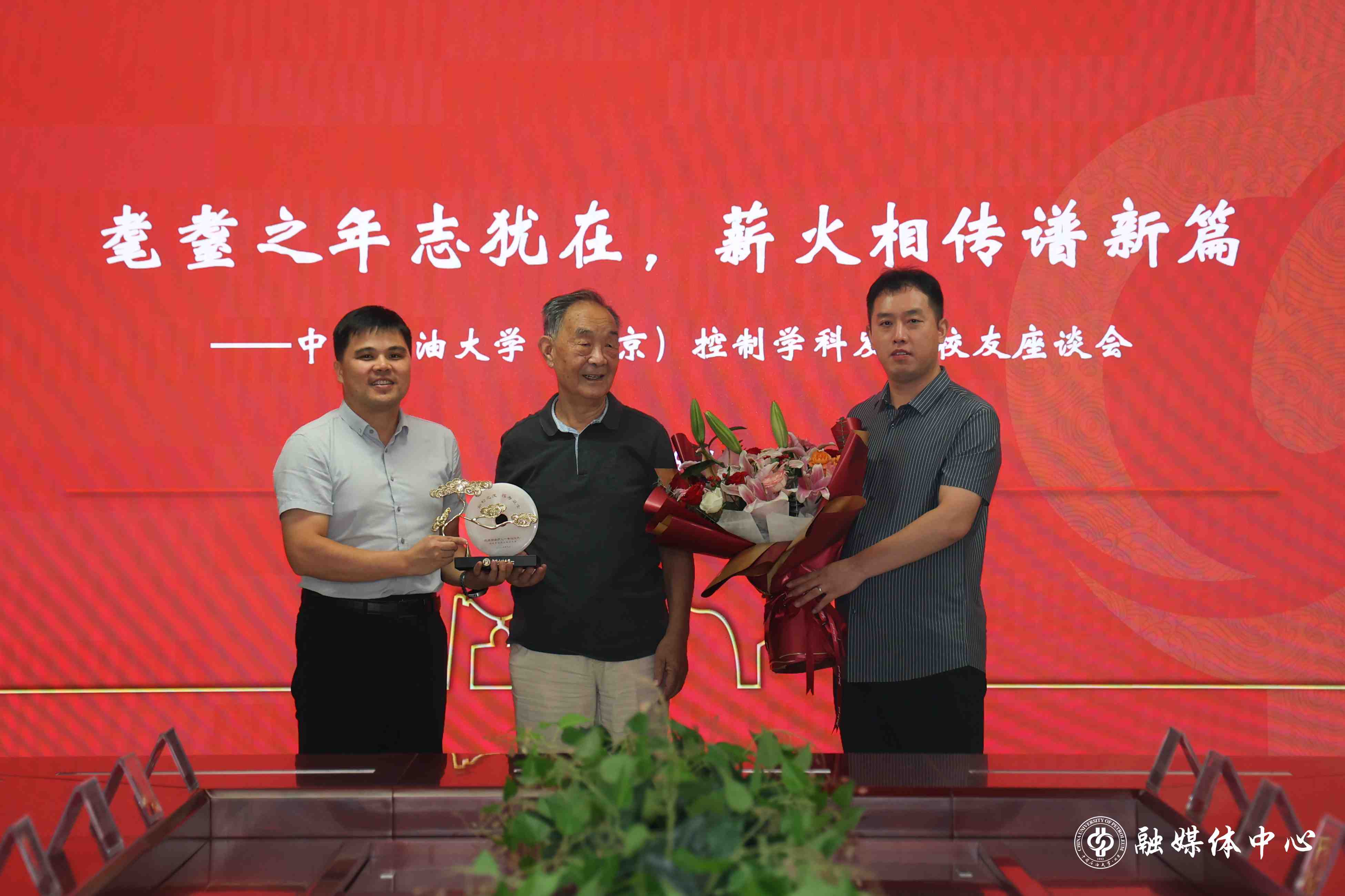 座谈会当天适逢袁璞教授90寿辰,蒲俊霖和中国石油大学(华东)控制学院副院长陈鸿龙代表两个学校为袁璞教授赠送了礼物,向他为中石大控制学科发展作出的卓越贡献表示崇高敬意。在讲话中,蒲俊霖高度肯定了校友们在捐资助学、校企合作等方面为母校作出的贡献。他表示,中石大控制学科有着光荣的历史,以袁璞教授为代表的老一辈中石大人用奋斗和智慧为学校和学科的发展奠定了坚实的基础。当前,大数据、人工智能等新一代信息技术不断突破,能源行业智能化发展、数字化转型为学校提供了新的机遇,希望广大校友继续关心、支持学校的改革发展,凝心聚力,携手开创学校高质量发展新格局。