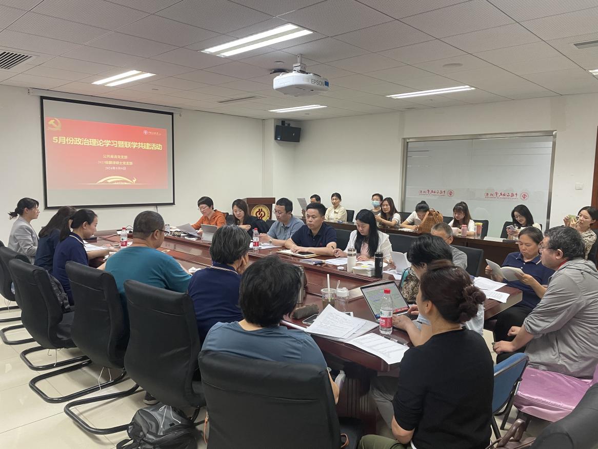 5月9日下午,外国语学院公共英语党支部与2023级翻译硕士党支部开展联学共建活动,共同进行理论知识学习,扎实推动党纪学习教育走深走实,重温习近平总书记重要回信精神,教育引导党员、干部深刻领悟“两个确立”的决定性意义,坚决做到“两个维护”,加强教师党员和学生党员凝聚力,共为学校事业高质量发展奋进合力。学院党委书记周玉成出席活动,公共英语党支部书记赵春龙主持活动。