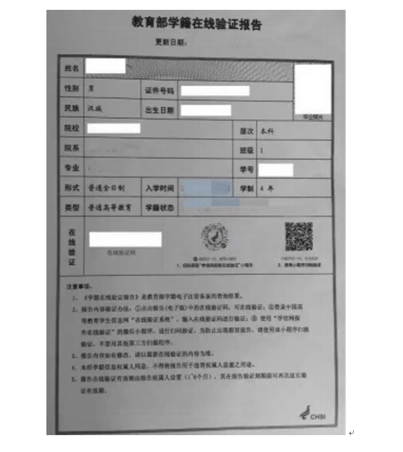 硕士阶段《教育部学籍在线验证报告》(应届硕士)