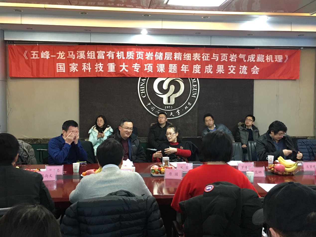 2018年12月28日,由我院姜振学教授任课题长的国家科技重大专项下属课题“五峰-龙马溪组富有机质页岩储层精细表征与页岩成藏机理”(2017ZX05035-002)2018年度成果交流会在非常规油气科学技术研究院召开。课题邀请了中国科学院地质与地球物理研究所罗晓容研究员、中国地质大学(北京)肖贤明教授、中国石油大学(北京)宋岩教授、中国石油大学(北京)钟宁宁教授、中国石油勘探开发研究院廊坊分院非常规所所长王红岩教授级高工、中国石油勘探开发研究院廊坊分院非常规副所长董大忠教授组成专家组,宋岩教授任专家组组长。各任务负责人、研究骨干和参与项目的研究生60余人出席会议。