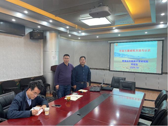 2021年10月27日下午,青海油田资深企业技术专家李积永高级工程师应非常规油气科学技术研究院赵传峰老师的邀请来我院做报告。报告题目是“开发方案研究方法与认识”。报告地点在非常规楼301会议室。报告会由赵传峰老师主持。受疫情影响,本次报告会采用线上和线下同步进行的方式。以刘琦副教授为代表的师生到会议室听取报告,另有多名师生参与线上会议。