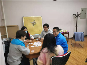 2020年11月13日下午,我院工会在教工活动中心棋牌室举行了非常规院教职工棋牌对抗交流赛。来自院内各所20余名老师参加了本次活动。参加本次活动的老师可以选择够级、双升、斗地主、围棋等比赛自由对局,活动中老师们聚精会神、精准计算、谨慎出牌、默契配合。比赛现场笑声阵阵,氛围和谐欢畅。
