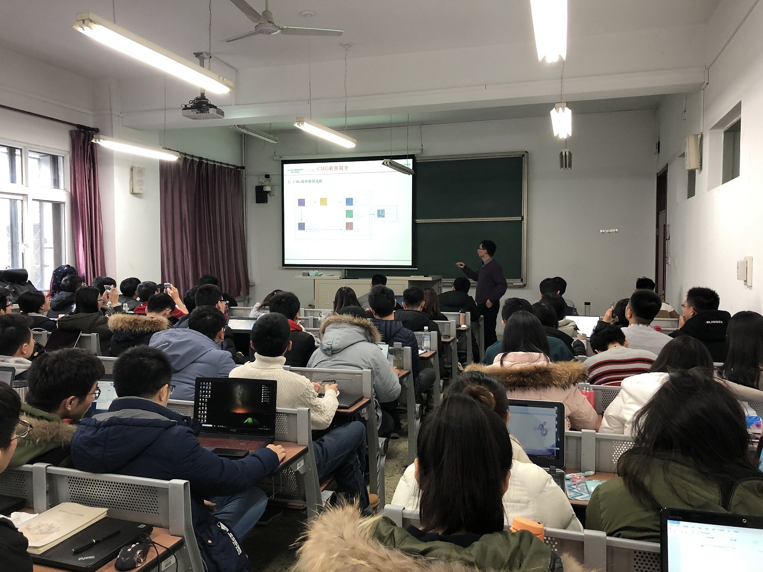 2018年12月24日上午8点30分,在二教109室,非常规油气科学技术研究院举办了CUP-CMG油气藏数值模拟联合实验室第一次软件培训会,全院有80名师生参加了本次培训会。主讲人赵传峰老师以独特的方式切入主题,用浅显易懂的语言生动形象地诠释了流动要素和模拟基础,对比了不同流动模拟方法的适用尺度,指出了数值模拟与物理模拟的外在差异与内在联系,阐述了数值模拟是一种思想的观点。培训会中,通过CMG在非常规油气藏开发和提高采收率技术方面的示例,引导在座师生如何准备数据文件和进行结果分析,进一步阐明了数值模拟思想。培训会结束后,参加的师生均表示受益匪浅,交口称赞,“既见到了树木,更重要的是也见到了森林”。
