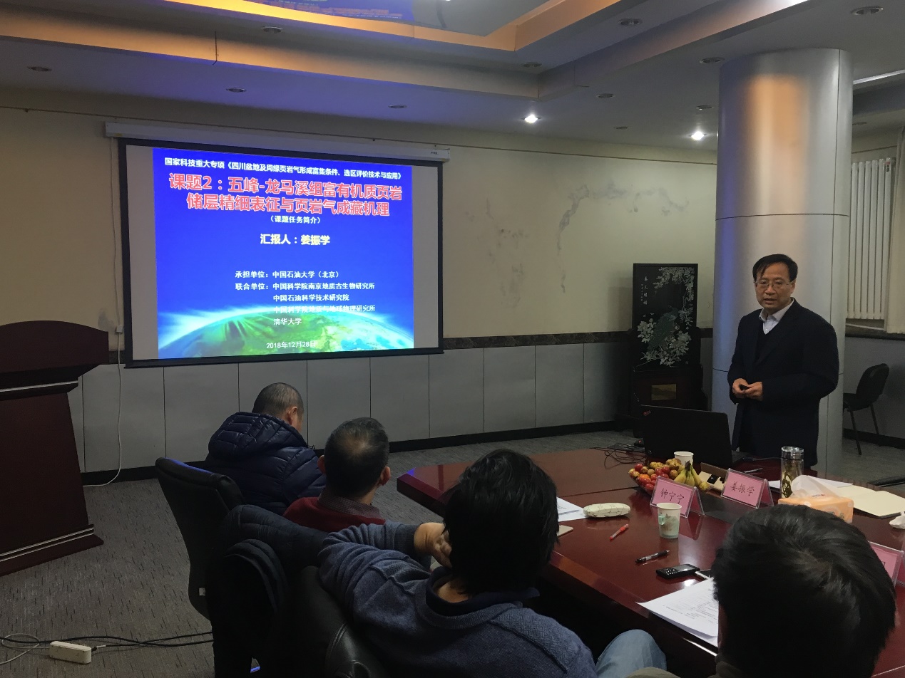 20181228日,由我院姜振学教授任课题长的国家科技重大专项下属课题“五峰-龙马溪组富有机质页岩储层精细表征与页岩成藏机理”(2017ZX05035-0022018年度成果交流会在非常规油气科学技术研究院召开。课题邀请了中国科学院地质与地球物理研究所罗晓容研究员、中国地质大学(北京)肖贤明教授、中国石油大学(北京)宋岩教授、中国石油大学(北京)钟宁宁教授、中国石油勘探开发研究院廊坊分院非常规所所长王红岩教授级高工、中国石油勘探开发研究院廊坊分院非常规副所长董大忠教授组成专家组,宋岩教授任专家组组长。各任务负责人、研究骨干和参与项目的研究生60余人出席会议。