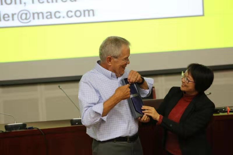 随后地球物理学院党委书记陆雅莉老师为Dr David院士赠送了纪念品,并对Dr David院士的到来表示感谢。报告结束后同学们带着自己的疑问和想法与Dr David院士用英语进行分析与讨论。