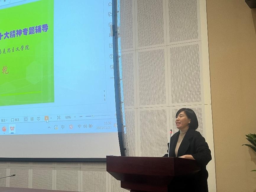 韩文乾教授从解读党的二十大主题、全面系统掌握习近平新时代中国特色社会主义思想的重要意义、如何学好习近平新时代中国特色社会主义思想三个方面进行讲授。
