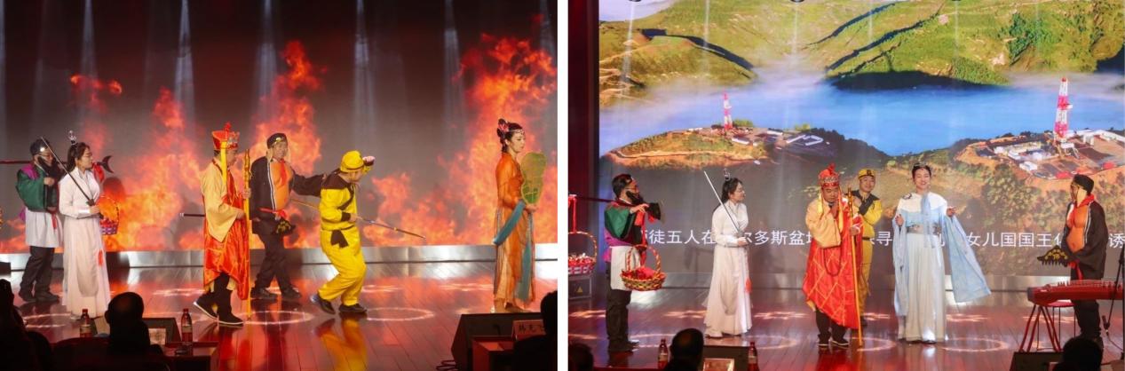 接到学校将举办元旦联欢会的通知后,学院迅速组建创作团队,利用课余时间研讨剧本,将石油地质专业特色与脍炙人口的故事结合,融入教育情怀,参演教师们克服教学科研任务重的困难,坚持十余次晚间和周末排练,全员零缺席。