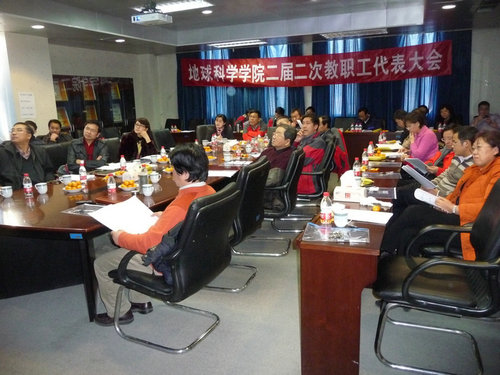 2011年12月22日下午,地球科学学院第二届第二次教职工代表大会在地质楼1103如期举行。中国石油大学(北京)工会常务副主席王仲民和副主席孔繁青代表校工会参加了此次大会。学院23名教职工代表、1名特邀代表、8名列席代表以及院工会人员参加了本次大会。
