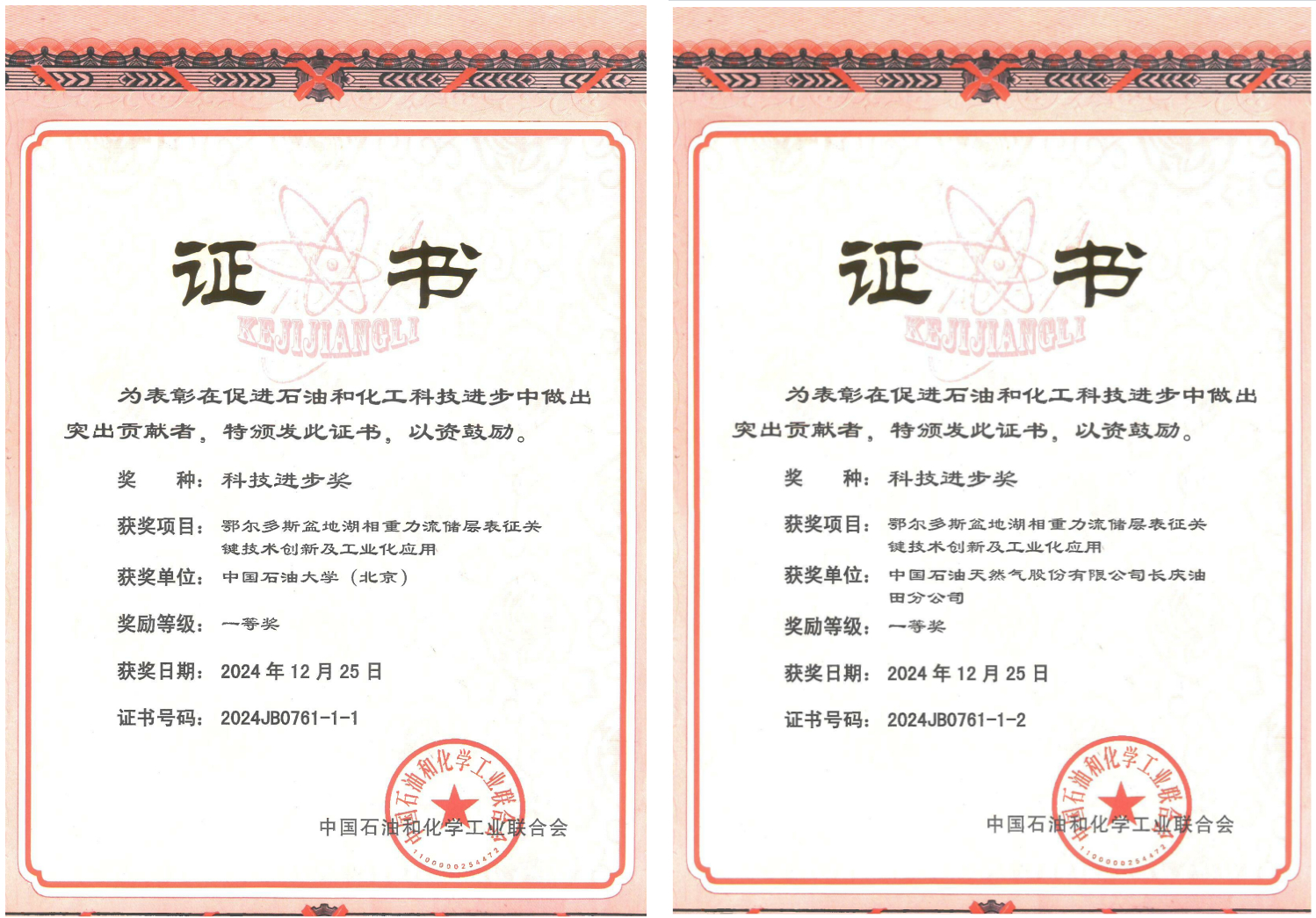 2024年12月30日,2024中国石油和化学工业联合会科技奖励大会在北京会议中心召开,大会隆重表彰了2024年度我国石油和化工行业科技创新的获奖单位和个人。我院岳大力教授作为第一完成人,我校作为第一完成单位与中国石油天然气股份有限公司长庆油田分公司联合申报的项目成果“鄂尔多斯盆地湖相重力流储层表征关键技术创新及工业化应用”,荣获科技进步一等奖,我院完成人还包括吴胜和、李庆、吕文雅、王武荣、周勇、李伟、徐振华等老师。