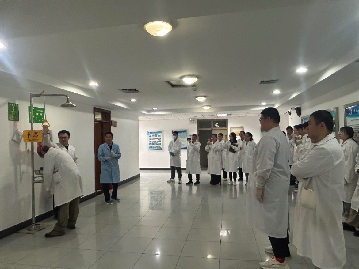 5月16日,学院组织腐蚀性化学品溢洒应急处置演练活动以及应急喷淋和洗眼器的使用,学院安全员师生宝、孙海霞,院督查组成员朱雷、高丽明以及科研和教学实验人员、教师代表和学生代表参与其中。通过此次活动锻炼了突发情况的处理能力,包括上报流程的熟悉、现场的应急处理、防护服等防护设备的穿戴和使用,疏散逃生和应急喷淋及洗眼器的使用,有助于加强实验室安全操作的意识、提升应急处置能力。