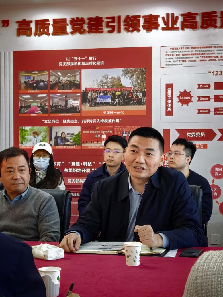 2025年11月13日,地球科学学院盆地与油藏研究中心教工党支部联合中国石油勘探开发研究院气田开发所党支部、延长石油集团研究院开发所党支部、学校期刊社党支部、“砥砺研思”油气成藏定量分析科研攻关研究生党支部,在地质楼1101会议室共同举办“强国行:同题共答,能源先锋——支部共建暨‘产-学-研-用’协同创新行动”组织生活。地学院党委书记刘钰铭、副院长罗情勇及各共建单位党支部代表出席会议。