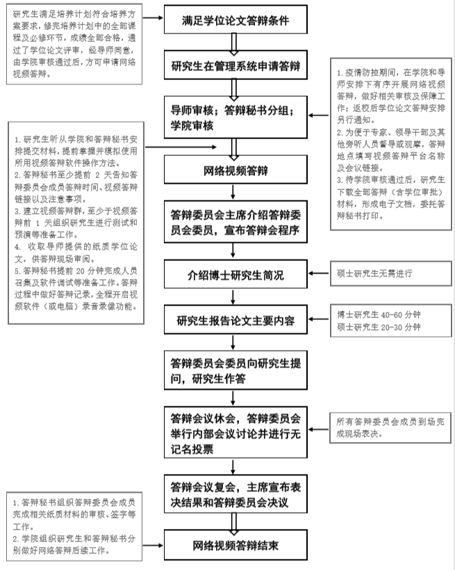 1.网络视频答辩后,学院将组织学生进一步完善学位论文,完成系统中学术成果登记、授予数据核对等系统填写及材料整理工作;组织答辩秘书按照《网络视频答辩秘书须知》(附件二)中“答辩秘书工作内容”的要求完成“网络视频答辩后续工作”。