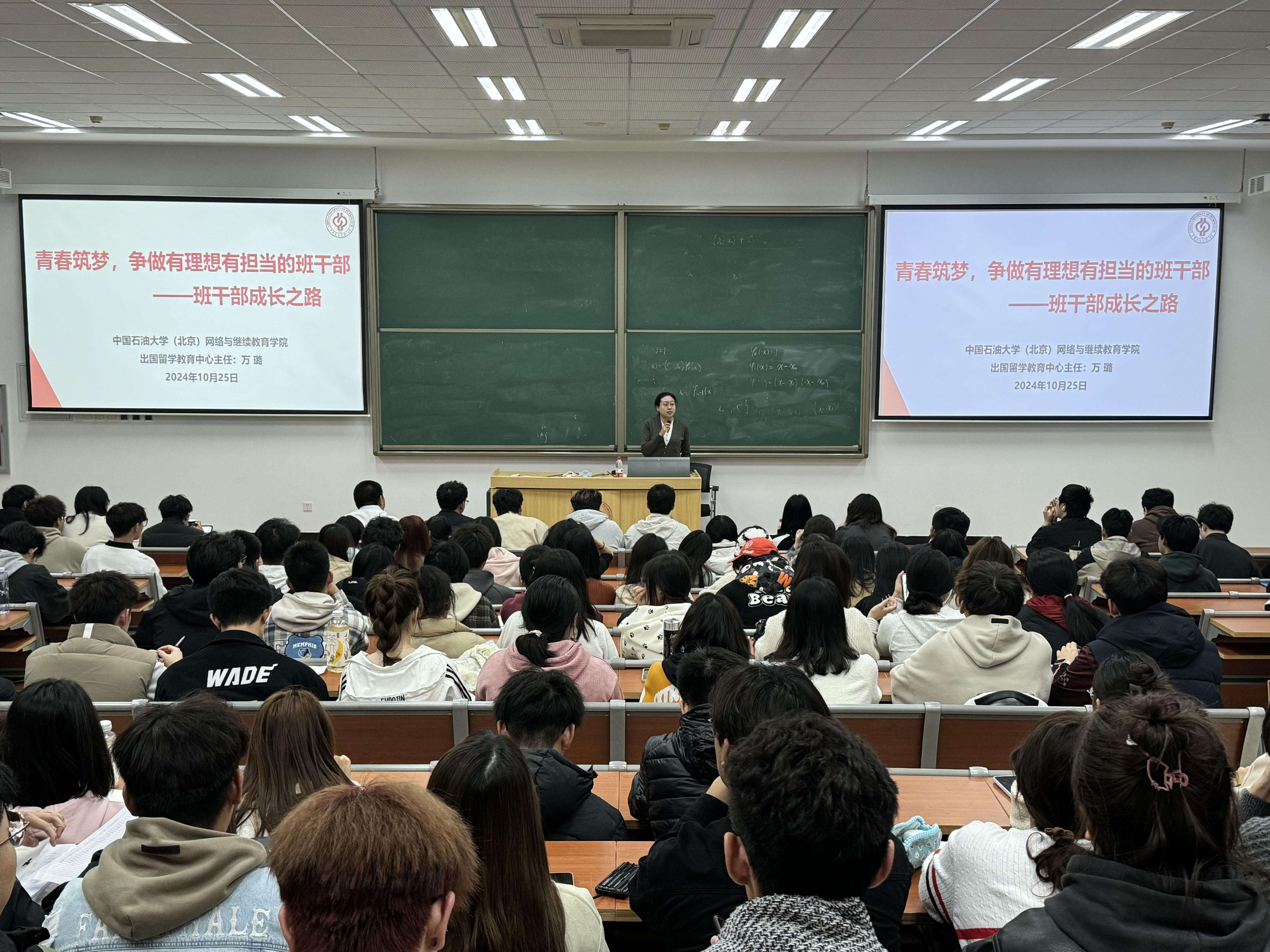 本次培训会以“青春筑梦,争做有理想有担当的班干部——干部成长之路”为主题,由出国留学教育中心主任万璐老师主讲,旨在提升班干部的综合素质和工作能力,培养有理想、有担当的学生干部队伍,助力班级管理和校园文化建设。