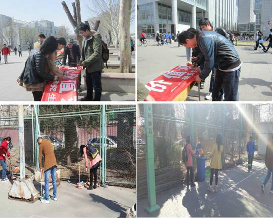 3月22日,开展校园卫生死角清扫活动,民管会同学对校园内的垃圾进行了彻底的清扫,清洁了垃圾箱,并重新摆放了自行车。
