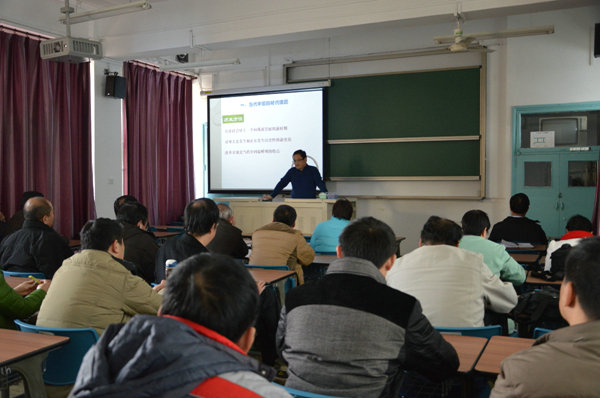 11月28日下午,石大后勤党总支召开中心组扩大会议,组织后勤全体党员在一教208听取党的十八届四中全会精神辅导讲座。