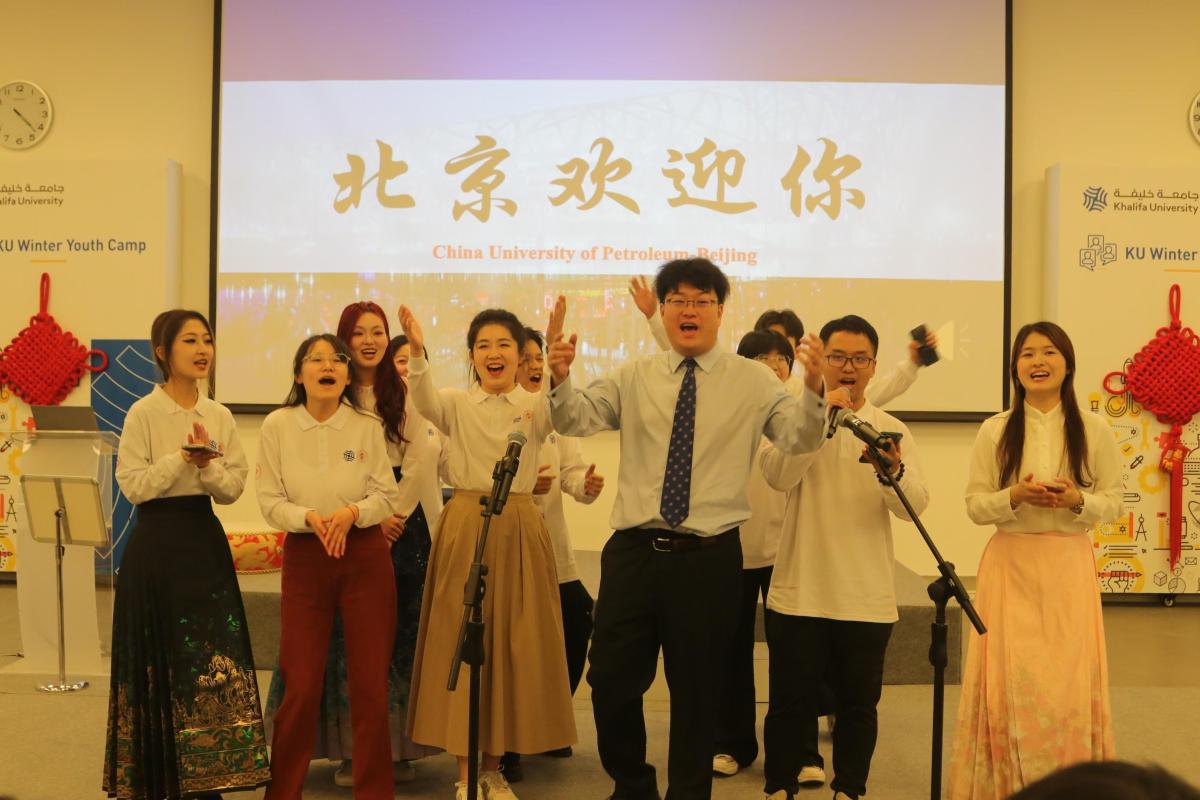 在“中阿文化交流节”活动中,师生们通过表演舞龙、伞舞、吹葫芦丝、撰写书法对联等节目,向哈利法大学的师生们生动展示了中国传统文化的深厚底蕴和魅力风采。中石大师生齐唱《北京欢迎你》歌曲,让阿联酋人民感受到中国人民的热情,为中阿友谊传递温暖与祝愿。在学校展示环节,中石大师生布设了学校宣传展台,两位中石大学生代表向全场嘉宾演讲《Embrace the Energy Future》,在介绍中石大的同时还积极宣传学校的国际交流项目,邀请阿联酋友人来华。超过五十名阿联酋学生表示愿意在今年夏天来中石大参加学校的来华夏令营项目,并写下了他们对学校和中国的祝福寄语。此次展示提升了中石大在阿联酋师生心中的国际知名度和形象,促进了中阿能源教育合作。