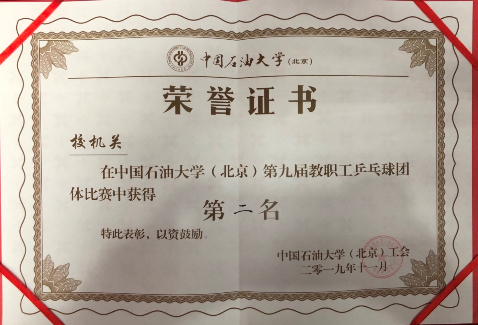 此次比赛共有全校19支队伍参加,分为四个小组,校机关充分发挥自身优势,顽强拼搏,以D组第一名的成绩晋级淘汰赛阶段;在四分之一决赛中,战胜地球物理学院代表队;在半决赛中,战胜网路与继续教育学院代表队;在决赛中,以2:3的成绩惜败后勤代表队,获得了本次团体比赛的第二名。