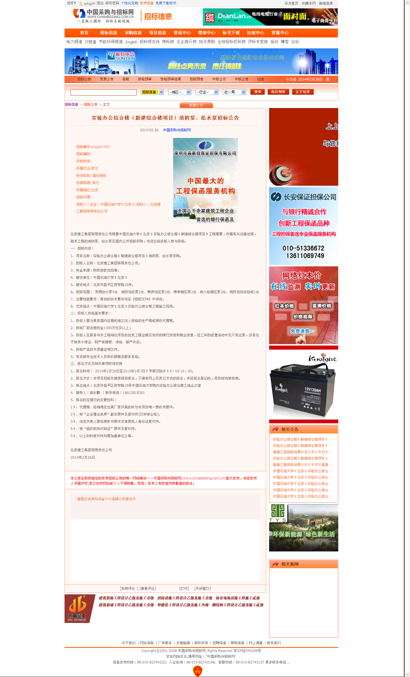 附图: 中国采购与招标网中国石油大学(北京)实验办公综合楼(新建综合楼项目)消防泵、给水泵公开招标公告