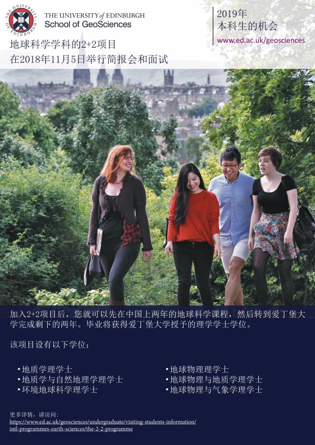 英国爱丁堡大学定于2018年11月5日来我校访问并且将针对报名2019年“2+2”联合培养项目的学生进行宣讲和面试