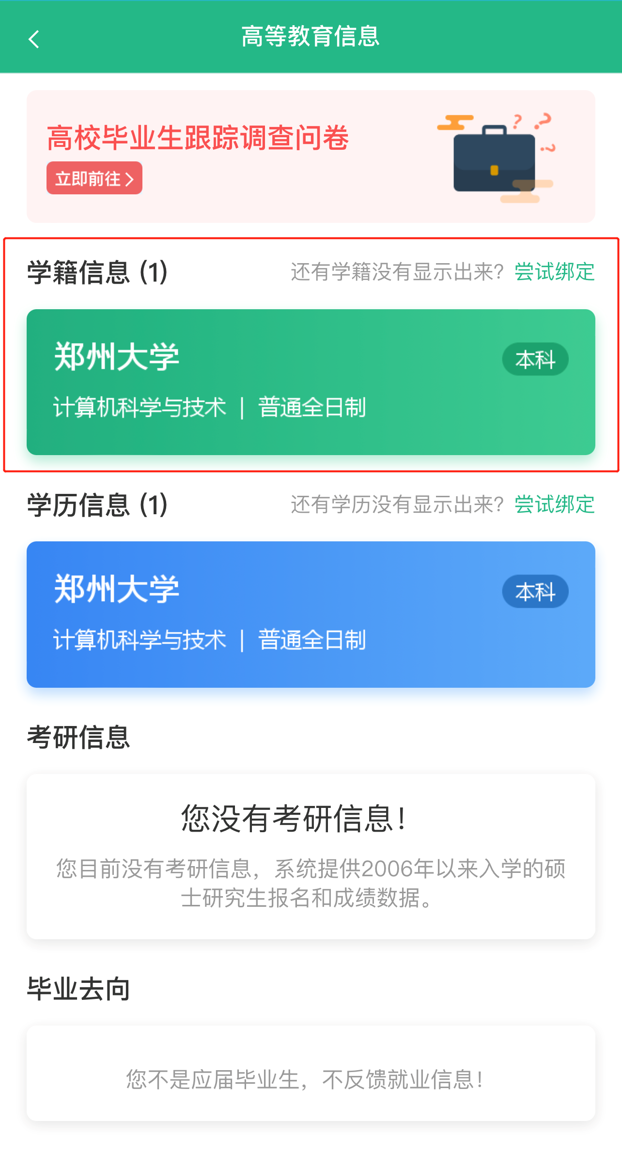 1.关注学信网公众号,绑定学信网账号,点击学信账号,查看学籍学历信息
