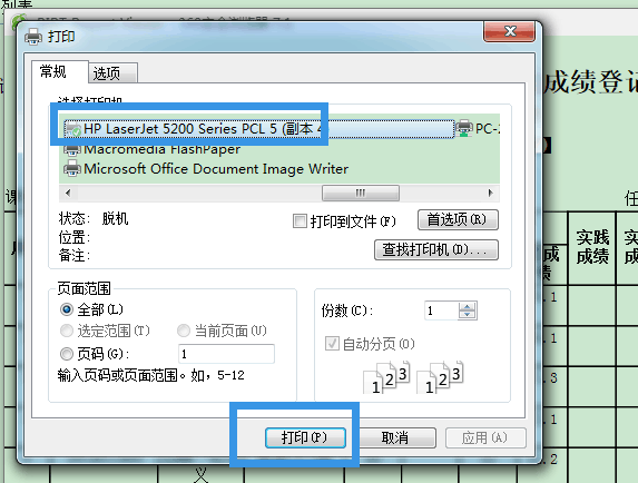 点击打印成绩单按钮,弹出如下对话框,点击打印按钮