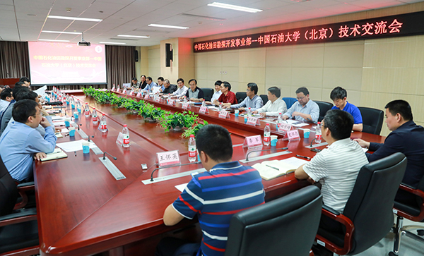 5月8日,中国石化油田勘探开发事业部主任孙焕泉、副主任张毅,率领勘探处、油田开发处、石油工程处、天然气处、非常规资源处、地面工程与设备处、胜利油田等部门负责人、技术专家来中国石油大学开展技术交流。中国石油大学校长张来斌、副校长李根生,科学技术处、地球科学学院、石油工程学院、机械与储运工程学院以及非常规油气科学技术研究院等负责人、教授代表等参加技术交流会。