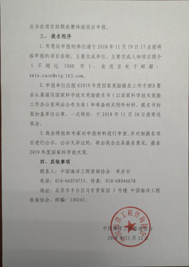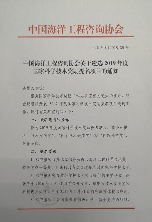 有意参与中国海洋工程咨询协会2019年度国家科学技术奖励提名项目遴选的项目负责人,请联系科学技术处。