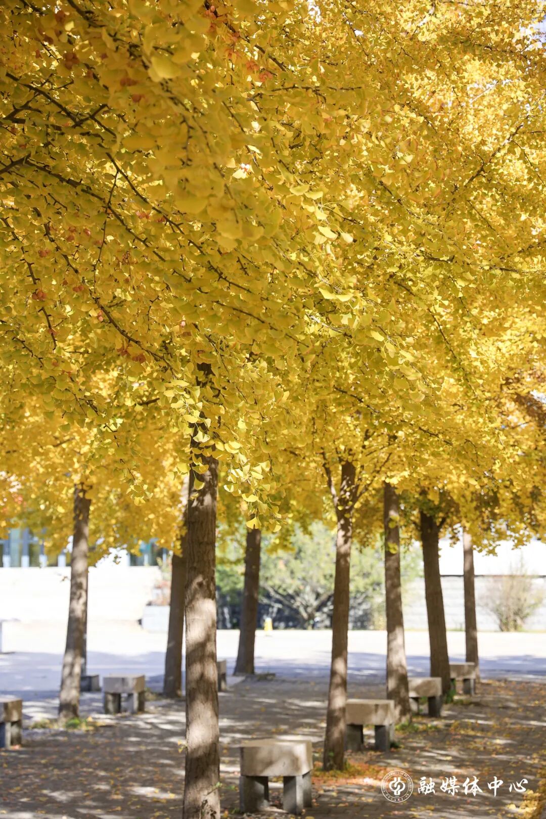 飘落的银杏叶与中石大对话,一片正红,一片橙黄,一片还带着夏末的青绿。一片叠着一片,将地面铺成一片斑斓的时光织锦