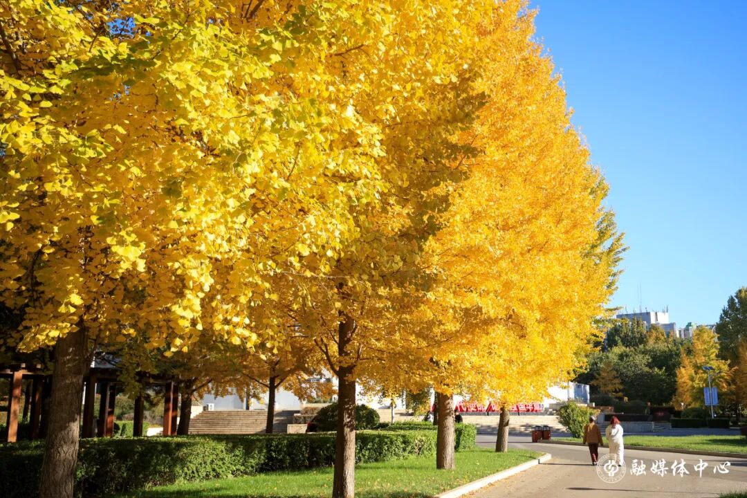 秋风执笔,蘸着军都山的清风,将整座校园重新描摹,它染过青年园的眉梢,拂过图书馆的窗格,在每一个晨昏里,酝酿着一场盛大的色彩交响。现在,请凝神屏息——