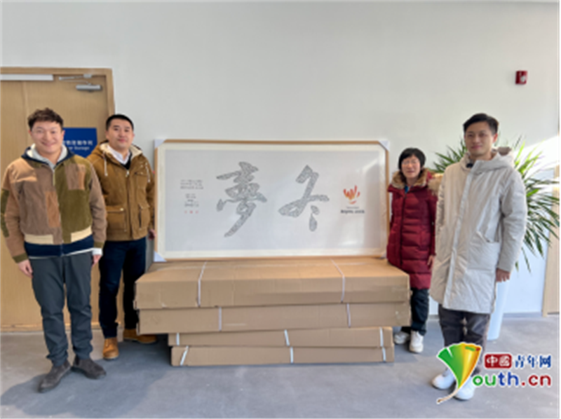 在延庆冬奥村(冬残奥村)志愿者之家,一幅《冬梦》书法设计作品格外亮眼。