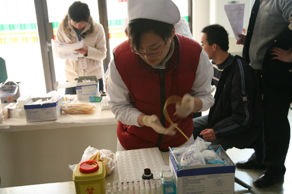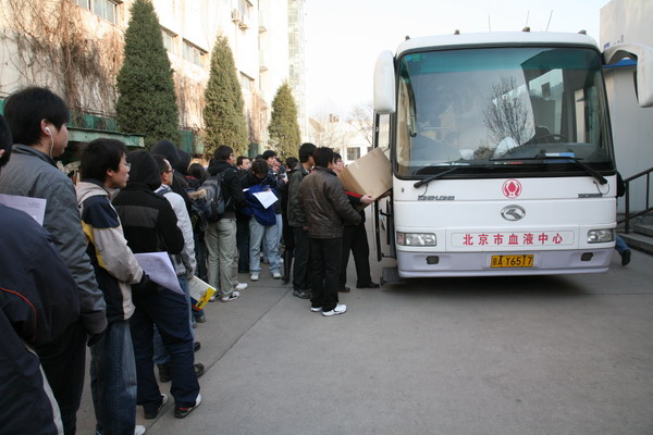 2009年2月28日,在校领导、校办、校红会的大力支持下,圆满完成2009年度无偿献血工作。经校医院统计,参加本次无偿献血活动的实际献血人数为315人,采血总量63200毫升,其中近百人两次以上无偿献血。在献血活动过程中,陈大恩副校长多次来到现场看望献血学生和工作人员,献血现场气氛异常感人。学生踊跃参加献血,距献血开始还有一小时时,在校医院门前排队准备参加无偿献血的同学已达到千人。由于北京市血液中心采血人数和准备物品有限,只好将没有拿到表格的同学及时疏散。但仍有数百名学生自愿当体检不合格人员的替补,继续在校医院门前等候。