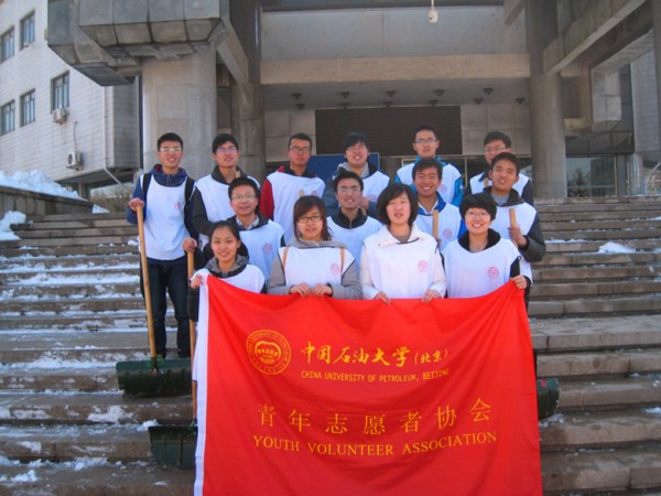 石大青年志愿者协会进行“学雷锋”义务扫雪活动