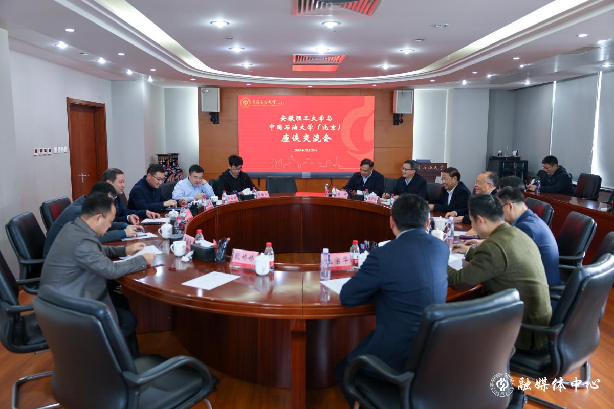 郭永存对中石大长期以来对安徽理工大学的支持表示感谢,对中石大办学事业取得的成绩表示祝贺。他表示,两校以学科群和干部人才为纽带,建立了良好的交流机制。希望中石大在高校党建、人才引育、科学研究、开放办学等方面分享先进经验,助力安徽理工大学加速提升办学水平,共同为服务国家战略需求与地方经济社会发展贡献智慧与力量。