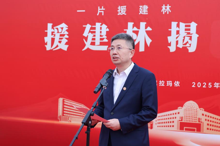 中国石油大学(北京)校长金衍在讲话中回顾了学校新疆办学的建设历程,向始终关心支持克拉玛依校区发展的援建高校和援建教师表达感谢。他指出,援建林承载着超越“添绿”的深层意义,既是教育协作的“纽带”,也是使命传承的“载体”,更是未来希望的“象征”。希望以此次揭牌为新起点,持续深化与援建高校的协作,扎根新疆大地、服务边疆发展,为推动西部高等教育振兴、助力新疆高质量发展作出更大贡献。
