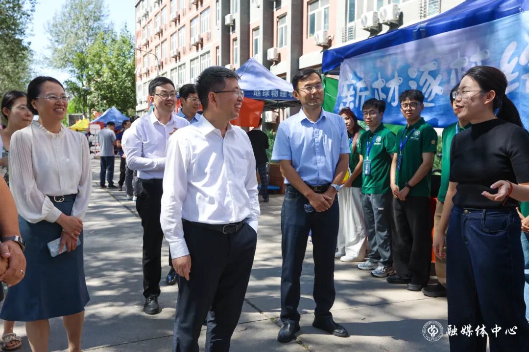 在校研究生会迎新点,志愿者向金衍展示了近年来研究生会在思想政治引领、成长发展服务、学术科研赋能以及交流交往等方面取得的成果。金衍勉励他们继续服务学校研究生成长发展,奋力书写为中国式现代化挺膺担当的青春篇章。