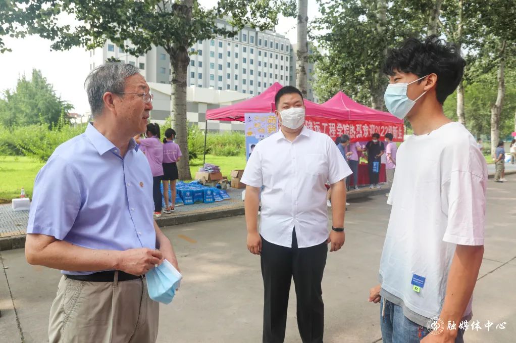 在东校园门口,陈峰对前来报到的新生及家长们表示欢迎。他说,学校针对迎新期间疫情防控作了周密安排,请家长和同学们理解、放心。在与石油工程学院研究生新生刘琬玉及家长的交流中,陈峰叮嘱刘琬玉同学:“勿忘父母恩,志存高远、刻苦学习,努力成为可堪大用的国家栋梁,这才是对父母最好的孝顺。”