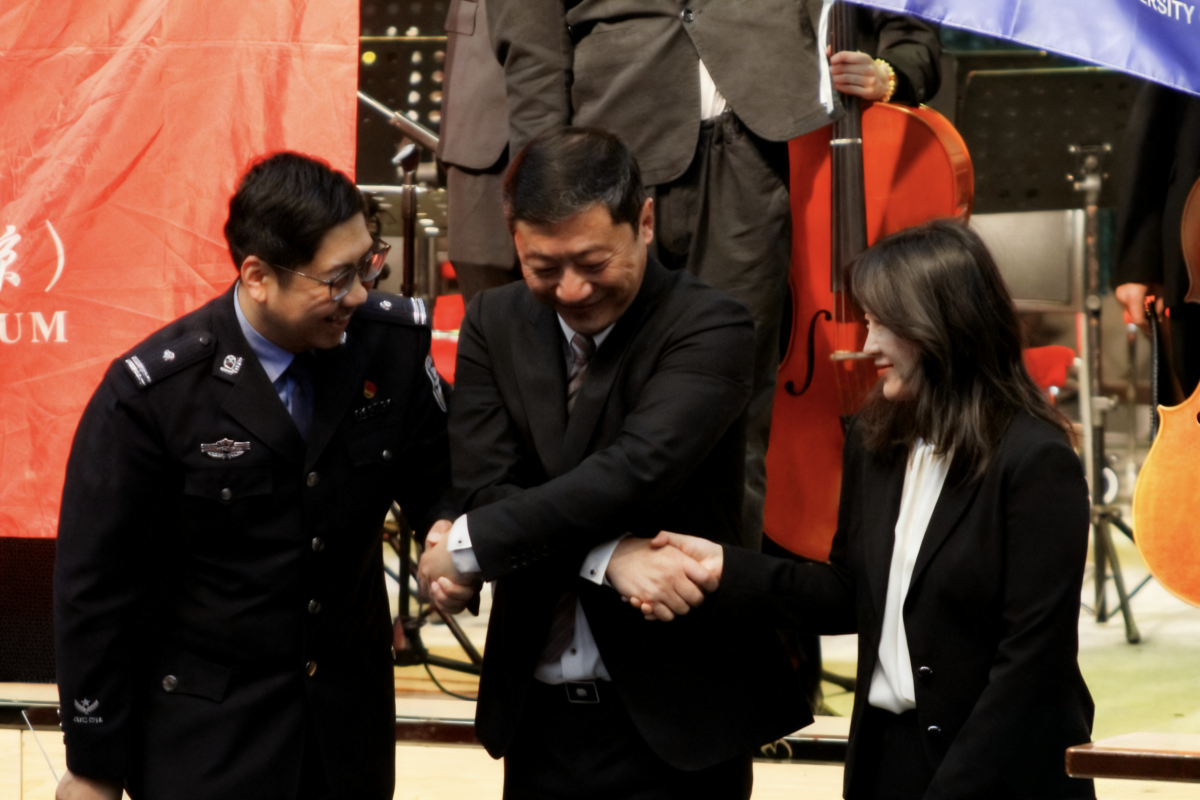 管弦音乐会以“美育浸润、校际共情”为核心。中国政法大学管弦乐团演绎《Flying》《An Unending Legacy》《Nostalgia》及《加勒比海盗》四首作品。旋律时而灵动轻快,时而深沉厚重,呈现了不同曲目的情感色彩。北京化工大学交响乐团带来了德沃夏克的经典曲目《E小调第九交响曲“自新大陆”》。乐团以饱满的演奏状态,诠释了乐章的深沉情感,带领现场师生沉浸式领略古典音乐的魅力。北京警察学院管乐团奏响《名侦探柯南》经典主题曲,熟悉的旋律唤醒了观众的青春记忆。作为主办方,中国石油大学(北京)管弦乐团压轴登场。演出《Celebration》以热烈欢快的节奏点燃现场氛围,《Into the Clouds!》用激昂的旋律传递青春奋进的力量,《粉红豹》《迈克尔·杰克逊金曲串烧》融合了经典质感与潮流活力,《Wild Blue Yonder》展现恢弘气势。音乐会尾声,四校乐团成员携手演出了《无人智胜进行曲》与《钢铁洪流进行曲》,将学子的青春热忱与深厚情谊融入乐声之中。